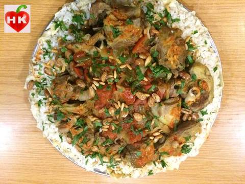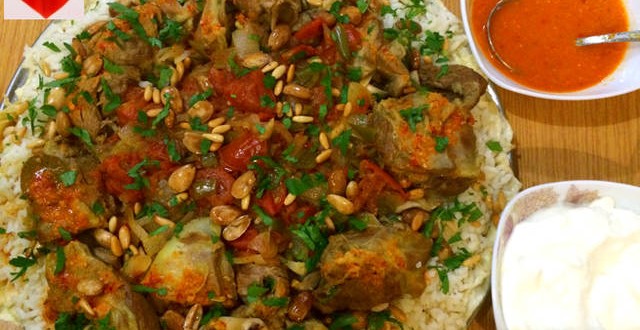 للتزيين : بقدونس مفروم – لوز وصنوبر محمر