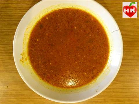 ثالثا لتحضير دقة الفلفل : نضع جميع مكونات الدقة في الخلاط ونضربها جيدا حتى تنعم ثم نسكبها في طبق ونضعها جانبا