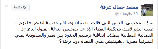 “الناس اللي قالت ان تيران وصنافير مصرية اتقبض عليهم؟”.