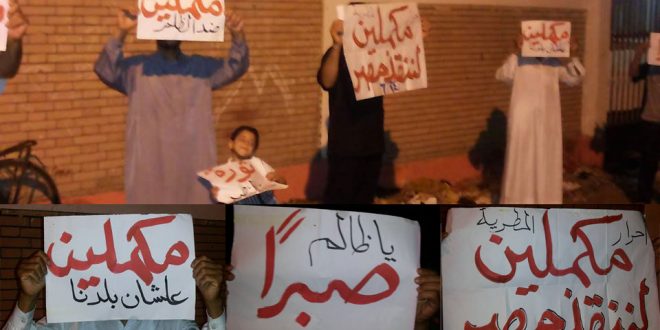 شارك أحرار المطرية فعاليات جمعة "مكملين لننقذ مصر" ورفعوا خلالها لافتات كتبوا عليها "يالم صبرا ، مكملين علشان بلدنا"
