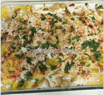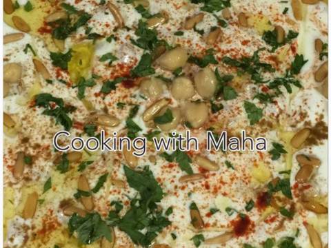 نخلط اللبن مع التوم المتبقي و طبعا حسب الرغبة على ان يكون الطعم واضحا قليلا ، ملح ، طحينة ، بعض من ماء السلق او العادي و نخلط ، الكمية تتوقف على حسب الصينية و سمك طبقة الخبز. الخبز سيتشرب اللبن تدريجيا. لهذا كمية اللبن يجب ان تكون كبيرة نوعا ما و نرش فوقه الكمون و الحر