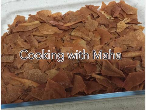 يوضع الخبز المقلي بالصينية (عندي صينية حجم كبير)