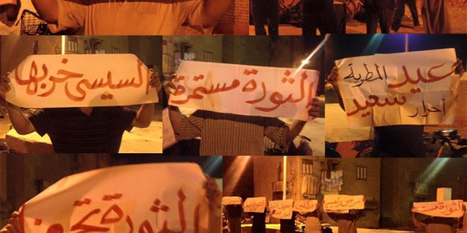 نظم أحرار المطرية وقفة رافضة للانقلاب العسكرى رفعوا خلالها شعار السيسى خربها وذلك ضمن فعاليات اسبوع الثورة تجمعنا وأكدوا على استمرار ثورتهم حتى زوال الانقلاب