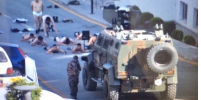 نشرت وسائل إعلام تركية، السبت 16 يوليو صورا تظهر عددا من العسكريين الانقلابيين وقد خلعوا لباسهم العسكري، وظهروا في مشهد وهم ” شبه عراة”.