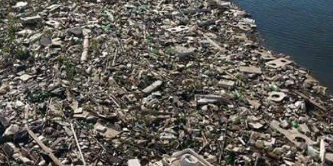 عدسة منزلاوى تلتقط صورا لكميات من القمامة تطفو على مياه بحر الجمالية