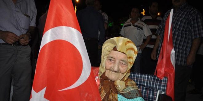 معمرة تركية تشارك بمظاهرات “صون الديمقراطية”