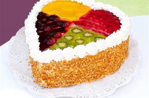 تترك بالثلاجة حتى تبرد قليلًا وتخرج التورتة من الثلاجة وتلف جوانبها بالسوداني المحمص وتوضع في طبق التقديم ثم ترص حبات الفواكه على شكل حصص كما بالصورة ونقوم بتحديد حواف التورتة بالكريمة باستخدام كيس الحلواني ونقوم بدهن الفواكه بالجيلي حتى يحافظ على بقائها طازجة ويعطيها شكل لامع وتترك التورتة بالثلاجة تبرد تمامًا لحين التقديم.
