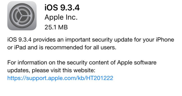 أرسلت قبل قليل آبل تحديث جديد لنظام تشغيل الأجهزة الذكية المحمولة برقم iOS 9.3.4 يقدم تحسينات أمنية وسد ثغرات بشكل رئيسي.