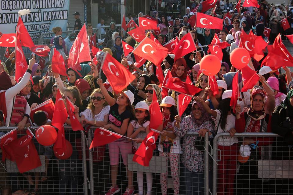 وشاركت عدد من المدن التركية في يوم “الديموقراطية والشهداء”، وخرج الآلاف من تلك المدن حاملين الأعلام منددين بمحاولة الانقلاب الفاشلة.