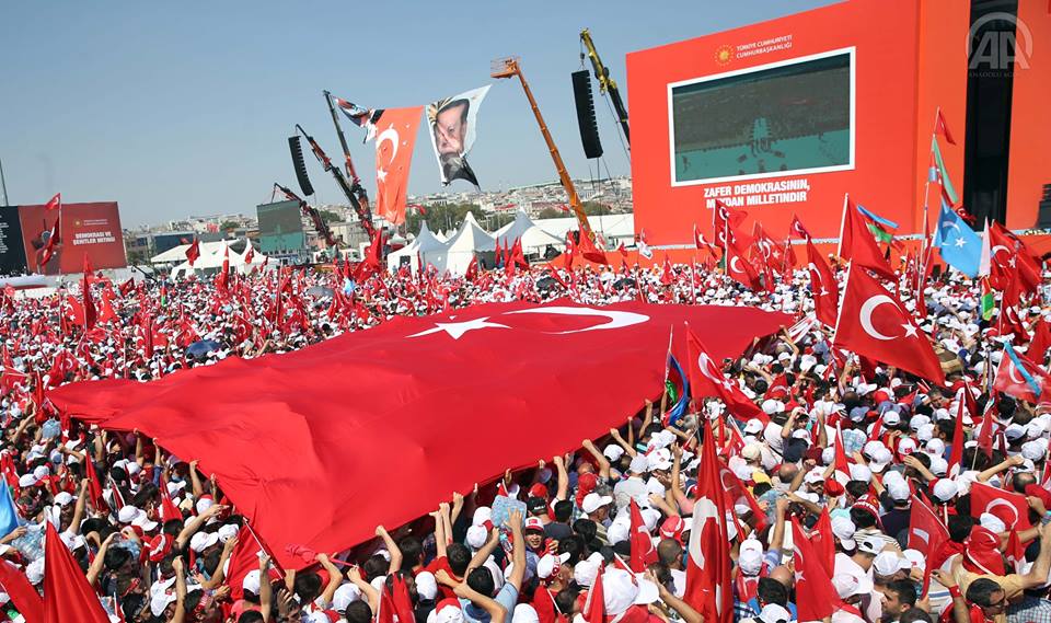 ويتميز الحشد اليوم عن الأيام الماضية بأنه الاول من نوعه الذي يمثل كافة الطوائف سواء الموالية للحكومة التركية، أو أنصار المعارضة، والذي دعا له الرئيس أردوغان، تحت مسمى “تجمع الديمقراطية والشهداء”.