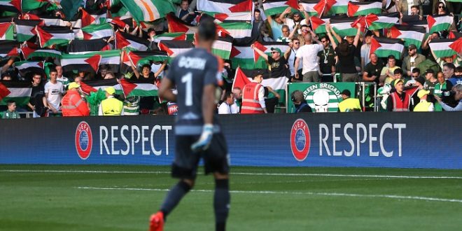 أظهرت جماهير نادي سيلتيك الاسكتلندي دعما كبيرا للقضية الفلسطينية، من خلال الأعلام التي انتشرت في المدرجات خلال مواجهة فريقها مع هبوعيل بئر السبع الإسرائيلي، متحدية احتمالية توقيع عقوبات عليها من الاتحاد الأوروبي لكرة القدم “اليويفا”.