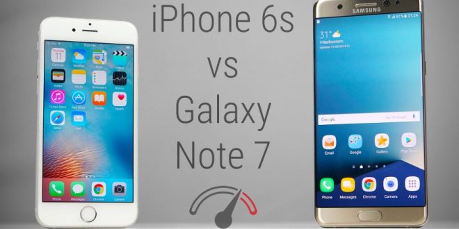 في مقارنة الأداء بين الهاتفين، عند أطلاق نفس التطبيقات في وقت واحد، غالاكسي Note 7 هزم تماما من قبل ايفون 6S، على الرغم من أن Note 7 يشمل أحدث معالج في السوق، وحقيقة أنه سنة واحدة أحدث من ايفون أبل الحالي.