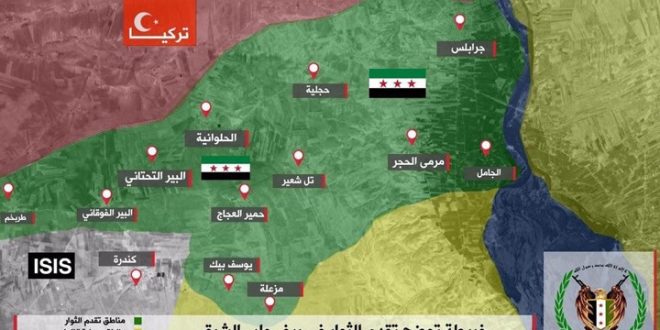 تعرف علي خارطة جرابلس و ريفها بعد التدخل التركي مع عناصر الجيش السوري الحر