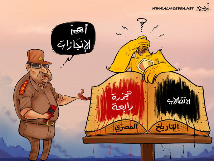 ووصفت “الجزيرة” أهم إنجازات عبدالفتاح السيسي، كما يرصده في التاريخ وهو عبارة عن نقلاب على السلطة المنتخبة، أعقبها أكبر مجزرة عرفتها مصر وهي مجزرة رابعة.