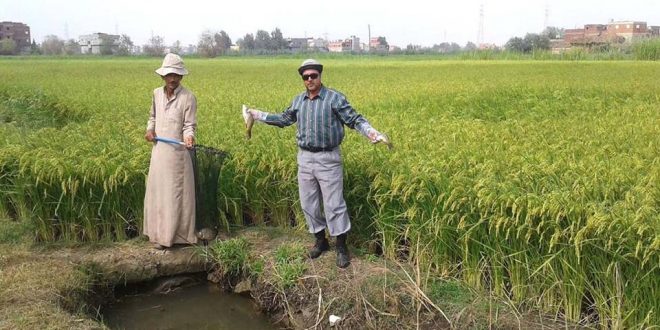 وقال محمد المنسى، وكيل وزارة الزراعة، إن تلك الأسماك المستزرعة فى حقول الأرز تتغذى على بعض الحشرات والطحالب والديدان الضارة بمحصول الأرز، وتؤدى مخلفات الأسماك فى الحقل إلى خصوبة التربة، مما يقلل من معدلات تسميد الأرز، والقضاء على ظاهرة الريم فى حقول الأرز التى تؤثر سلبا على إنتاجية الأرز، وتعمل على زيادة التهوية نتيجة لحركة الأسماك داخل حقل الأرز، ويؤدى استزراع الأسماك في حقول الأرز إلى زيادة محصول الأرز بحوالى 10 – 12% للفدان، وبالتالى زيادة العائد النقدى للمزارع بزيادة محصول الأرز والأسماك معا.