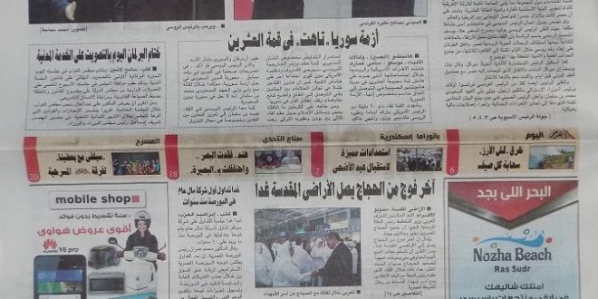 • افتتاحية الأهرام بعنوان «”القضية المركزية” للعالم العربي» تبنت فيها توجهات النظام.
