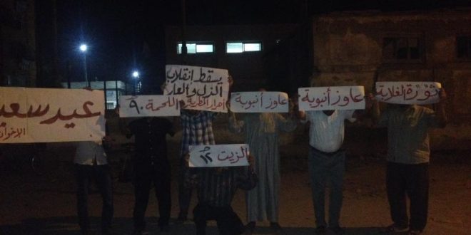 وقفة ليلية لرافضى الانقلاب بالمطرية يرفعون خلالها شعارات مناهضة لانقلاب الذل والعار