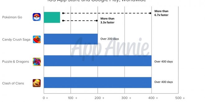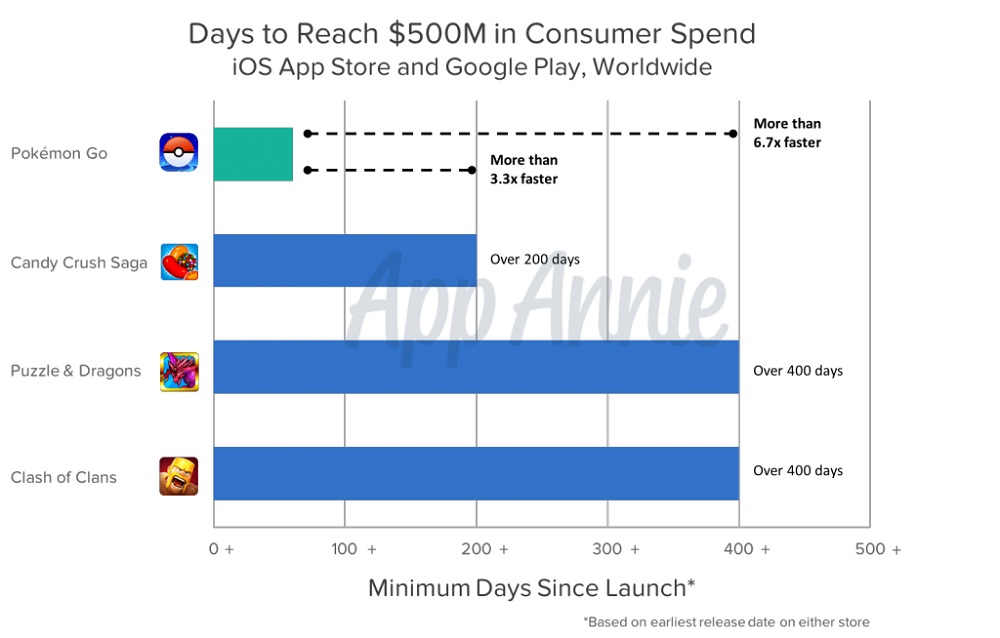هذا الرقم مصدره شركة App Annie للإحصائيات والتحليلات المتخصصة بالتطبيقات وتتوقع بلوغ اللعبة عتبة المليار دولار بحلول نهاية العام، أي خلال ستة أشهر فقط من إطلاقها رسمياً، وعلى الرغم من عدم توفرها بعد في العديد من دول العالم الكبرى.