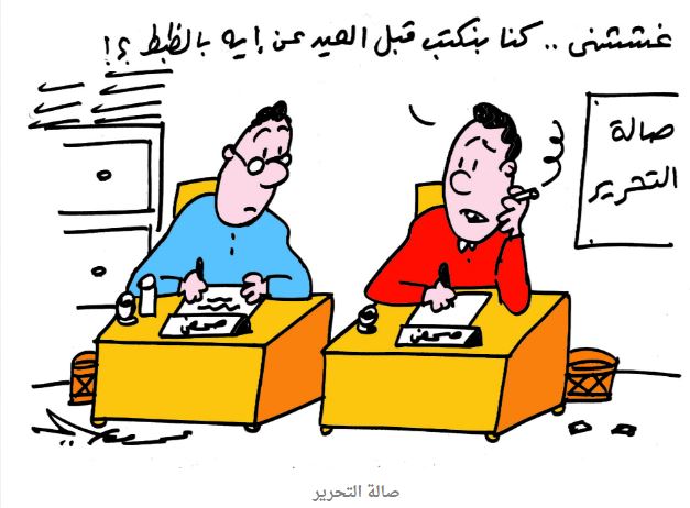ونشرت “المصري اليوم” كاريكاتير يسخر فيه من حال الصحفيين بعد اجازة العيد، ومحاولة عودتهم إلى موضوعات بعيدة عن إطار الأعياد.