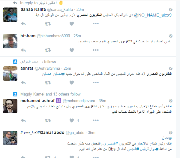 بعد فضيحة اللقاء.. تويتر يسخر من ماسبيرو عبر هاشتاج “التلفزيون المصري”