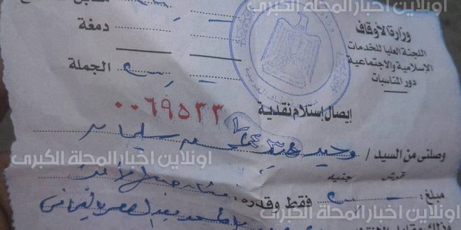 تداول نشطاء ورقة رسمية مختومة بختم النسر صادرة عن مديرية أوقاف الغربية، لتطبيق قرار وزارة الأوقاف الذي تم تعميمه على مستوى الجمهورية؛ بفرض رسوم إدارية علي مراسم إشهار الزواج، عقد القران، ومراسم العزاء بقيمة ٢٠٠ جنيه في المدن، و١٠٠ جنيه في القرى.