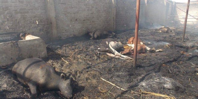 بالصور : مليون جنيه خسائر حريق مزرعة الهادى للمواشى بميت سلسيل