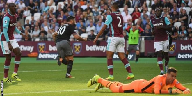 واعتمد مدرب وست هام، الكرواتي سلافن بيليتش، على طريقة اللعب 4-2-3-1، ولعب الإيطالي القادم من يوفنتوس مقابل 20 مليون جنيه إسترليني سيموني زازا كرأس حربة وخلفه الأرجنتيني مانويل لانزيني والإنجليزي ميشيل أنطونيو الذي سجل 5 أهداف في الجولات الخمس الأولى، وتولى الدولي الفرنسي ديميتري باييه صناعة الألعاب أمام لاعبي الوسط شيخ كوياتي ومارك نوبل.