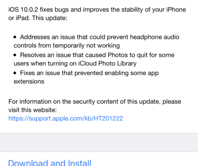 أطلقت آبل تحديث فرعي طارئ جديد وسريع لنظام iOS يحمل الرقم 10.0.2 لحل مشاكل ظهرت مؤخراً في التعامل مع سماعات الصوت عبر منفذ Lightning في الآيفون 7.