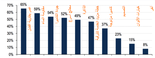 السبب الأول الذي ذكر من قبل 65٪ ممن شملهم الاستطلاع، كان عمر البطارية أطول. وتبع ذلك تحسين مقاومة تسرب المياه مع 59٪، ثم نوعية الكاميرا مع 54٪.