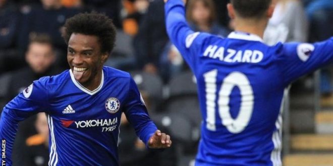 وسجل هدفي تشيلسي ويليان (61) ودييجو كوستا (67)، ليرتفع رصيد البلوز إلى 13 نقطة تصعد به مؤقتا للمركز السادس، فيما توقف رصيد هال سيتي عن النقطة السابعة في المركز الخامس عشر لحين نهاية الجولة.