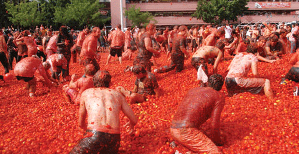 مهرجان الطماطم في بونول بإسبانيا، ويقام في يوم الأربعاء الأخير من أغسطس وهو أكبر معركة غذاء في العالم حيث يتوجه آلاف من البشر إلى تلك المدينة الصغيرة ويستمر المهرجان مدة أسبوع وتقوم الشاحنات بتفريغ 90000 باوند من الطماطم على حشد من الناس في حالة سكر لمدة ساعة واحدة وتقوم الناس بالتراشق مع بعضهم.