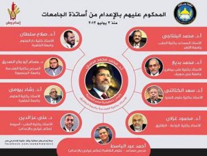 رصدت حملة “إعدام وطن” التي دشنها نشطاء مواقع التواصل الاجتماعي للتضامن مع المئات من المحكوم عليهم بالإعدام في هزليات محاكم الانقلاب، عددا كبيرا من أساتذة الجامعات المحكوم عليهم بالإعدام في هزليات مختلفة، الأمر الذي يؤكد عداء نظام الانقلاب للأكاديميين والباحثين والعلماء من النخبة المصرية المشهود لها بالكفاءة والتي مثلت مصر في الحصول على عدد من الجوائز الدولية.