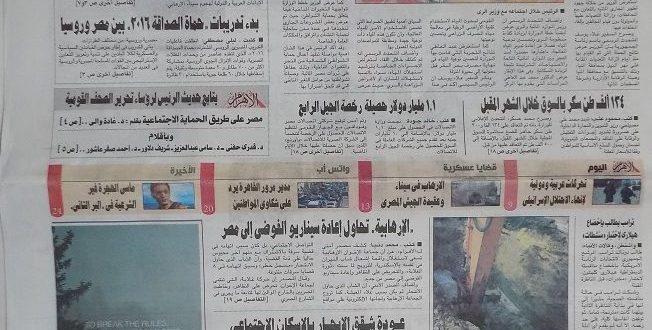 كما تناولت الصحف انطلاق فعاليات “حماة الصداقة2016” ووصول وحدات الإنزال الجوى الروسية لمنطقة التدريب.. وتحدثت عن تنفيذ 60 طلعة جوية بمشاركة أكثر من 700 مقاتل و20 معدة متوسطة وثقيلة من البلدين حسب تقرير موسع بالأهرام.. هذا وقد تناولت كل من الأخبار والشروق والوطن نفس الموضوع.