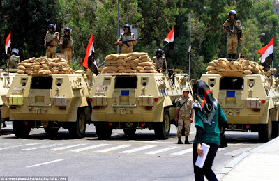 فعلى الرغم من أن المجلس الأعلى للقوات المسلحة، اتخذ من نزول مئات الجماهير إلى ميدان التحرير في 30 يونيو، ذريعة لانقلابه الذي قاده وزير الدفاع الخائن عبدالفتاح السيسي، ففي كل مناسبة ثورية، ينزل الجيش، وتنتشر المجنزرات والمدرعات والآلي والجرينوف، السيسي وأجهزته القمعية والاستخباراتية يعدون بجملة من الإجراءات على مستويات عدة، أهمها نزول الجيش للميادين والشوارع الرئيسية، وزيادة أعداد الكمائن الثابتة والمتحركة على مداخل القاهرة من جهات بحري وقبلي.