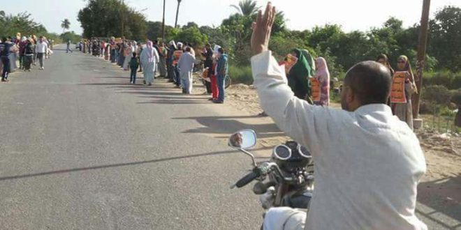 تظاهر ثوار الحسينية صبيحة جمعة”حق الغلابة” إستجابة لدعوة التحالف الوطني لدعم الشرعية، في مسيرة حاشدة سبقتها سلسلة بشرية امتدت علي الطريق الواصل لمدينة الصالحية للمطالبة برحيل قائد الإنقلاب العسكري الفاشل عبد الفتاح السيسي