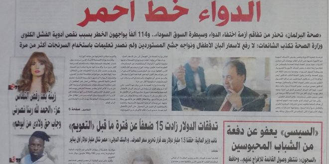 أما في ملف الدولار والتعويم فقد سوق مانشيت الشروق لمواصلة الدولار تراجعه في البنوك الحكومية وقالت إنه يفقد23 قرشًا.. وأن فارق سعر الشراء يتسع إلى نحو نصف جنيه بين حكومية وأخرى خاصة.. وأن تدفقات النقد الأجنبي لمصر منذ قرار التعويم بلغ  1.5 مليار دولار، ونقلت عن المصيلحى أنه إذا لم يعرض قرض الصندوق على البرلمان تصبح الإتفاقية “حبرًا على ورق”.. ولكن الجمهورية قالت إن 2.6 مليار حصيلة بيع الدولار للبنوك منذ تحرير سعر الصرف.
