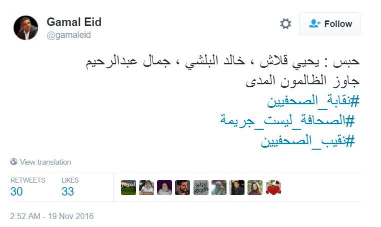 – الناشط الحقوقي جمال عيد: “حبس : يحيي قلاش ، خالد البلشي ، جمال عبدالرحيم، جاوز الظالمون المدى”