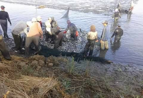 قام عدد من الصيادين العاملين بالمزرعة السمكية بعملية الصيد بالمنزله بأحد أحواض المزرعة ومنزلاوى ينشر بعض الصور التى توضح مشاهد عملية الصيد .