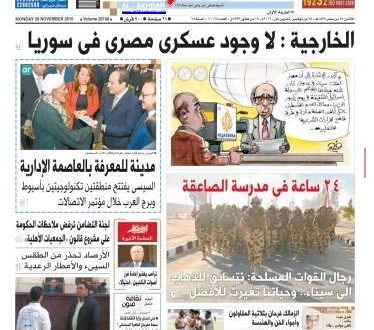 تناولت صحف اليوم عددا من الأخبار المهمة في ملف العلاقات الخارجية كان أبرزها نفي الخارجية وجود أي قوات مصرية في سوريا وهو الرد الذي تأخر كثيرا، ما يعكس ارتباكا في الإدارة الانقلابية وهم بلا شيك سينفون ذلك ولن يؤكدوه خوفا من تصاعد الغضب السعودي الخليجي، حيث كتبت الأهرام “الخارجية تنفى أى وجود عسكرى مصرى على الأراضى السورية”.. ونشرته كذلك كل من الأخبار والمصري اليوم والبوابة.