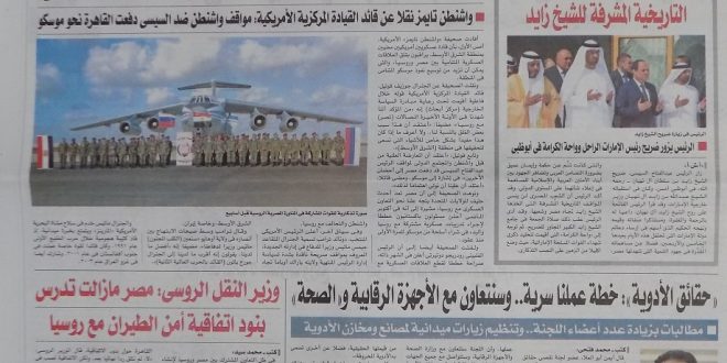 وأشارت أخبار اليوم إلى حصر أراضي الإصلاح المتعدى عليها واستخدام أموالها في المشروعات.. وفي الوطن يؤكد رئيس لجنة الطاقة بمجلس نواب العسكر أنه لن يتم رفع الدعم عن البنزين نهاية العام ولا يمكن إلغاؤه ألا بعد 5 سنوات على الأقل.. وعلاقتنا بالسعودية أكبر من “أرامكو” ووفرنا بديلاً دولياً لها…