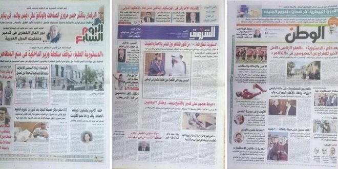 تناولت صحف اليوم الأحد عدة موضوعات مهمة أبرزها حكم الدستورية العليا ببطلان المادة 10 من قانون التظاهر واتفقت الصحف على أن الحكم لا يفيد المسجونين. وأشارت إلى أن سلمان لم يقابل السيسي حيث غادر السيسي أبو ظبي بينما وصل سلمان ووصفت المصري اليوم ذلك بدبلوماسية “تجنب لقاء الزعماء”.