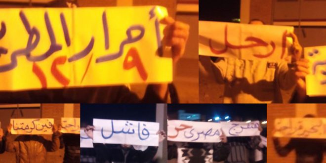 رفع أحرار المطرية شعار “ارحل يافاشل” خلال وقفة ليلية فى جمعة “الحرية حق” لرفض الانقلاب العسكرى وسياساته الفاشلة والازمات الإقتصادية التى يمر بها المواطن المصرى.