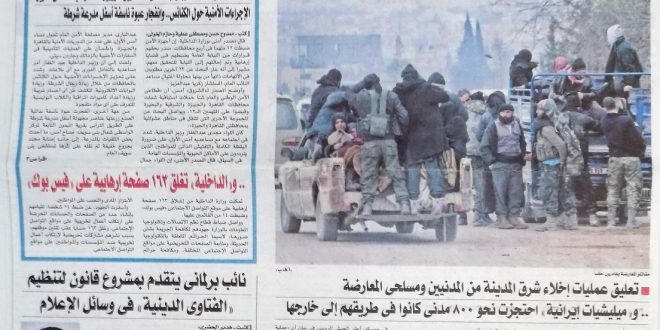 أقرت صحف السيسي بالنفوذ الروسي الإيراني في سوريا؛ حيث نقلت الأهرام عن روسيا أن ما وصفته بتحرير حلب “من أهلها” بداية لهدنة جديدة في سوريا وقالت المصري اليوم إن سوريا تعلن انتهاء “الإجلاء” من شرق حلب.. “بوتين”: الخطوة التالية التوصل إلى وقف إطلاق نار شامل.