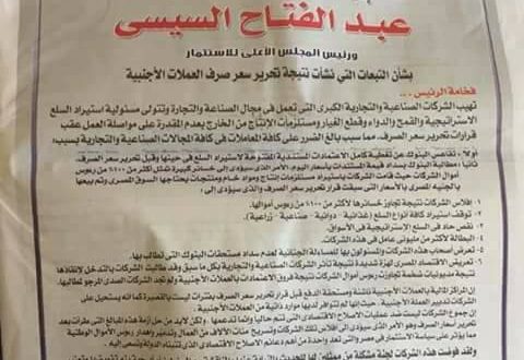واعتبر المحلل والصحفي فتحي مجدي- في تغريدة على حسابه على الفيس بوك- أنه “ليس هناك ما هو أكثر وضوحًا من ذلك الإعلان للحديث عن الوضع الكارثي الذي تعيشه مصر الآن، والذي ينذر بأن الأسوأ لم يأت بعد إذا لم يتم العمل سريعًا لتجاوز آثاره الكارثية على الصناعة والتجارة في مصر”.