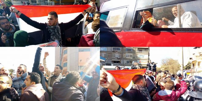 وهتف المتظاهرون، “أرحل يا سيسي.. الشعب يريد إسقاط النظام”، و”الحرية لكل سجين هاتوا إخوتنا المعتقلين”، “عيش حرية الجزر دي مصرية”.