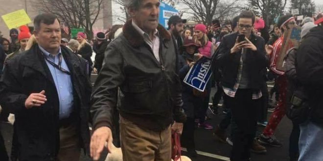 على الرغم من أنه لم يمض على مغادرته لمنصبه 24 ساعة كوزير خارجية الولايات المتحدة، شارك جون كيري المواطنين الأميركيين المعترضين على تولي دونالد ترامب منصب الرئيس مظاهراتهم.