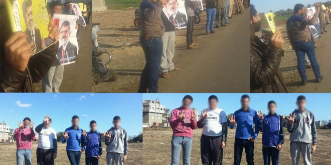 ورفع المشاركين صور الرئيس محمد مرسى وشارات رابعة ولاقوا خلال وقفتهم تفاعل من المارة .