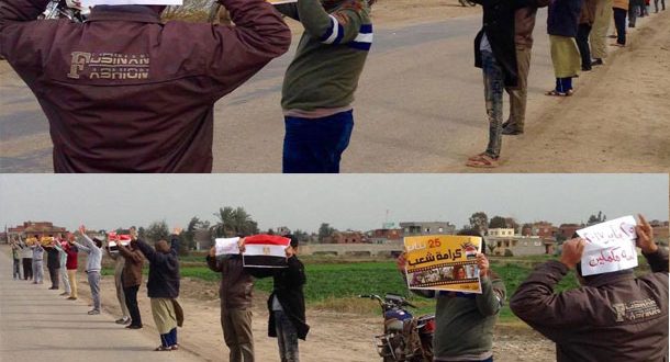 نظم أحرار كفر حجاج بالمنزلة سلسة بشرية فى الذكرى السادسة لثورة 25 يناير وطلبوا خلالها برحيل السيسى الفاشل ونظامه .