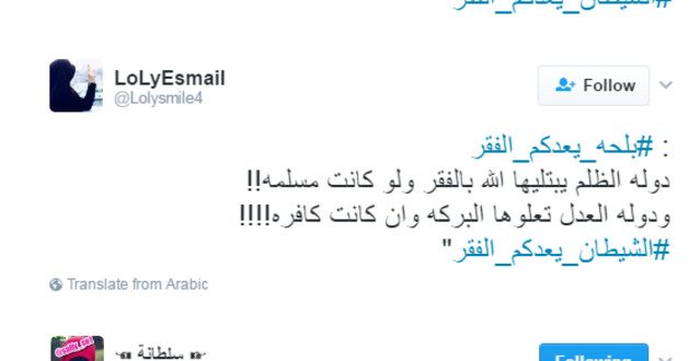 دشن مغردو موقع التدوين المصغر “تويتر” هاشتاج #الشيطان_يعدكم_الفقر”، في إشارة منهم إلى عبد الفتاح السيسي، بعد تصريحاته الأخيرة في مؤتمر الشبابا المنعقد بأسوان.