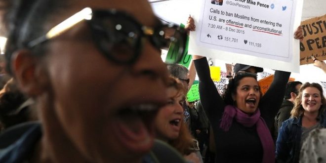 وقال محتج أمريكي، من أصحاب البشرة السوداء: “هنا دولتنا التي هي بلد الحريات، وقرارات ترامب تتعارض مع ذلك”.